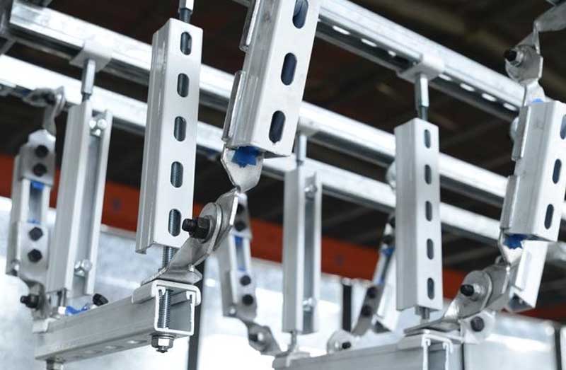 機電抗震支架是限制附屬機電工程設施產生位移,控制設施振動,并將荷載傳遞至承載結構上的各類組件或裝置。